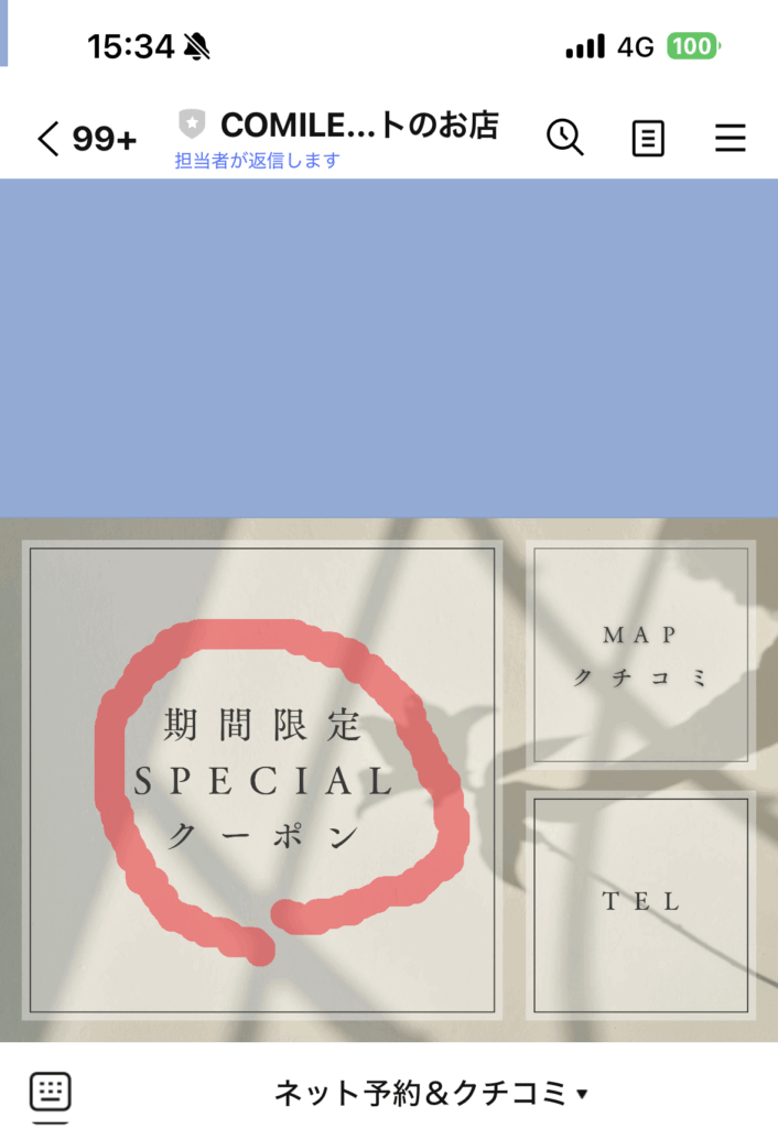 公式LINEよりご予約の場合は、クーポンボタンから24時間お受けできます